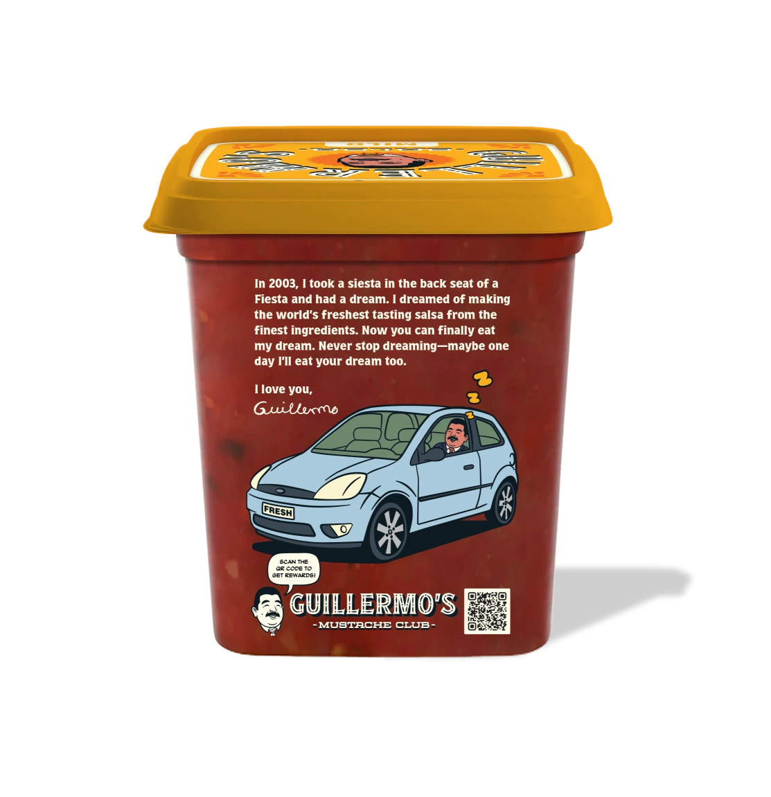 Not too hot. Not too mild. Just right. Made with chopped tomatoes, lime juice, cilantro, and un poquito jalapeño. The kind of salsa that’ll tickle your mustache a little and gets you dancing like me after one tequila.